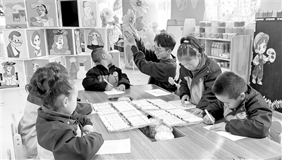 带领孩子们体验投壶、捶丸、踩高跷、蹴鞠、抖空竹等传统游戏,组织写“福”字、写对联、猜灯谜、挂“福”牌、剪纸等传统活动……幼儿园还在文化建设和日常保育活动中融入中华优秀传统文化。