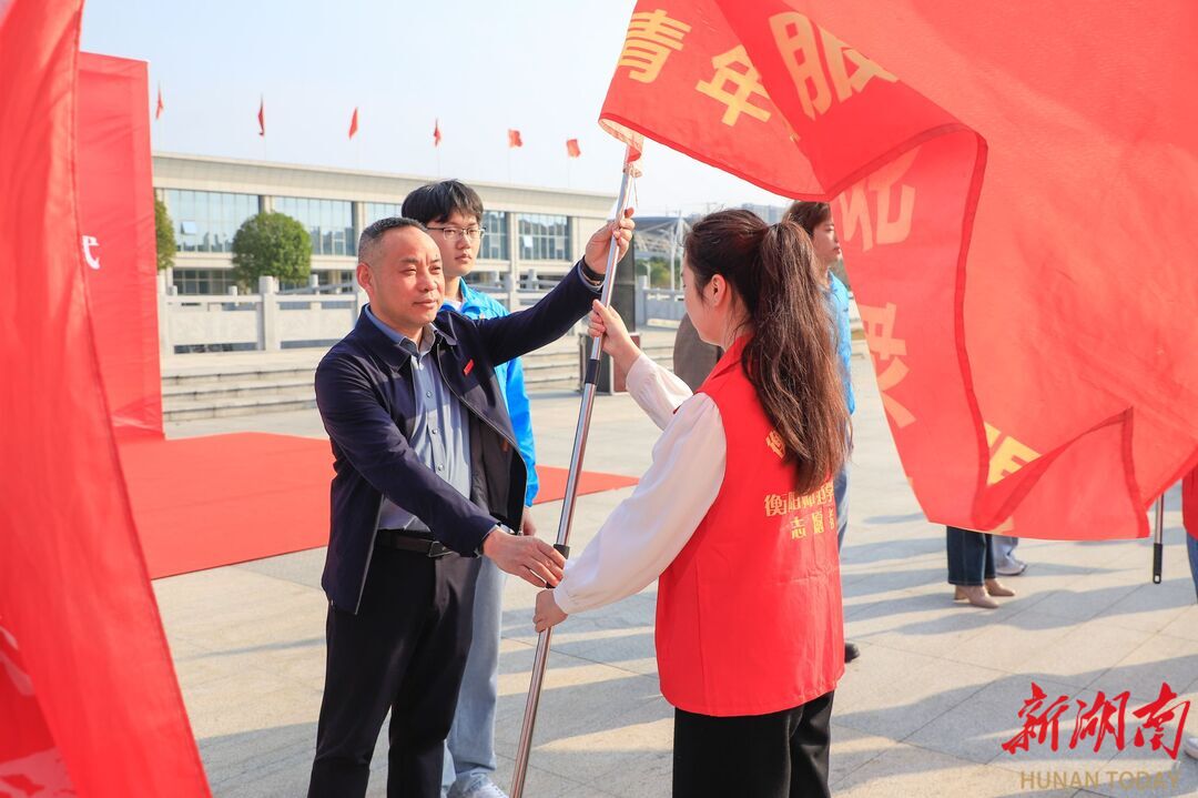 启动仪式上,唐芳贵和各职能部门领导为志愿者服务队授旗。鲜红的队旗与志愿者的“红马甲”交相辉映,汇聚成一片“志愿红”的海洋。全体志愿者高举右拳庄严宣誓:“尽己所能,服务社会,以青春捍卫志愿精神。”志愿者们深情朗诵“百年衡师正青春,学习雷锋正当时”的铿锵誓言,诠释新时代衡师青年对雷锋精神的深刻铭记。