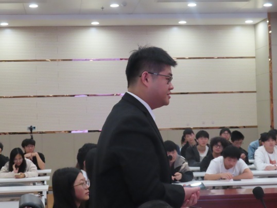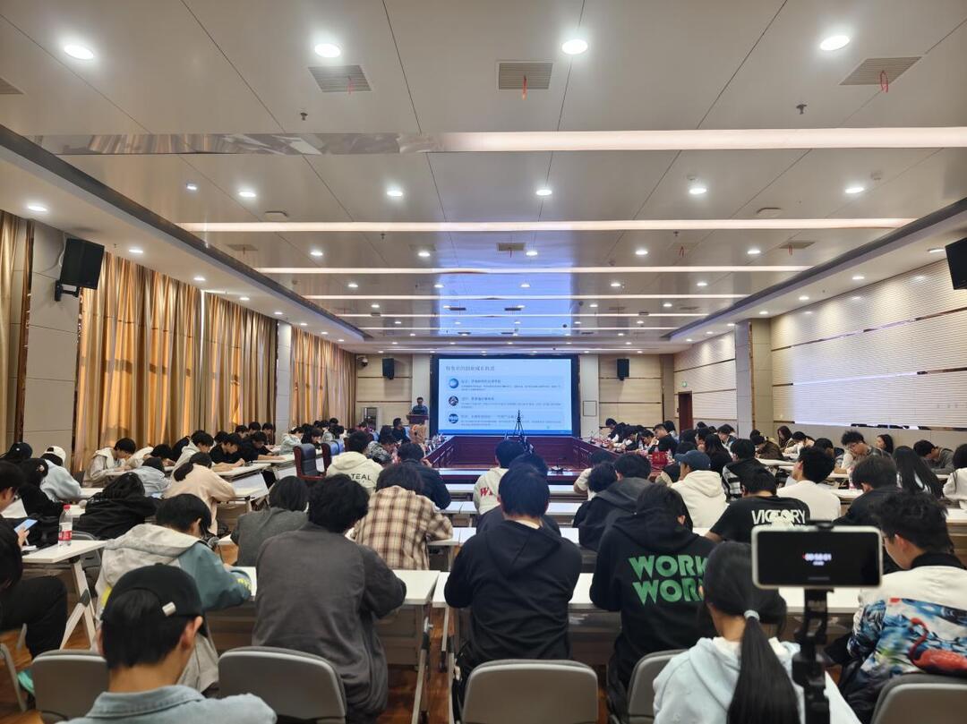 “创业成功的关键在于创业者的核心能力和素质素养,专业技术是硬实力,情商财商、抗压能力等是软实力,它们相辅相成,方能支撑长远发展。”作为校外创业导师,彭斌为在场学子带来了一场内容翔实、针对性强、富有启发意义的创业指导课。彭斌鼓励学子善用“借势”思维整合资源,勇于将知识转化为实践能力;面对市场竞争,他建议要在市场夹缝中寻找需求、灵活调整策略以实现生存发展;通过剖析“从社区小餐馆发展到区域养老服务产业链”的生动案例,他清晰勾勒出企业从基础积累到实现社会价值的进阶路径,为在场学子提供了具象化的创业蓝图。 在互动环节,同学们围绕“项目进展遇阻如何决策”“团队管理技巧”“如何把握行业发展机遇”等问题积极提问,彭斌结合自身经验与行业洞察逐一细致解答,如及时雨般解决同学们创业中的痛点难点问题。