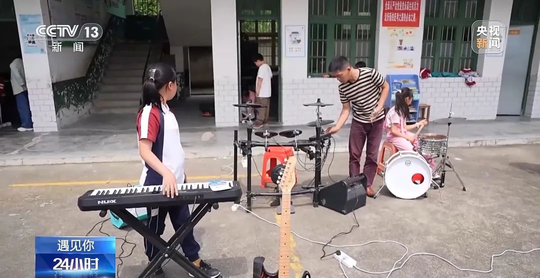 五月时节,阳光照进群山环抱的湖南衡阳县岣嵝乡妙溪小学,音乐教室里传来欢快的乐曲演奏声。几个孩子正在练习贝斯、电子琴和架子鼓,为他们的演出认真做准备。