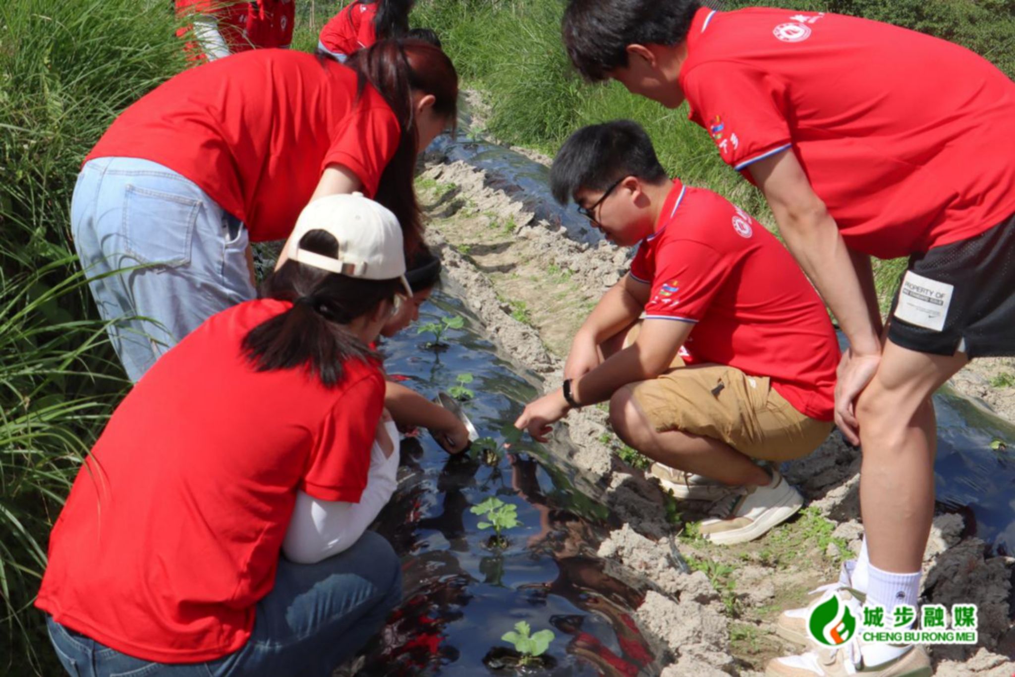 实践团跟随蒙泽军来到瓜田,在蒙泽军的指导下,实践团成员给西瓜苗浇水施肥。面对成员们的疑问,蒙泽军为实践团解惑:“地里的黑色塑料膜能够遮挡阳光,防止杂草生长,还能保水保温,让西瓜长得更好。”