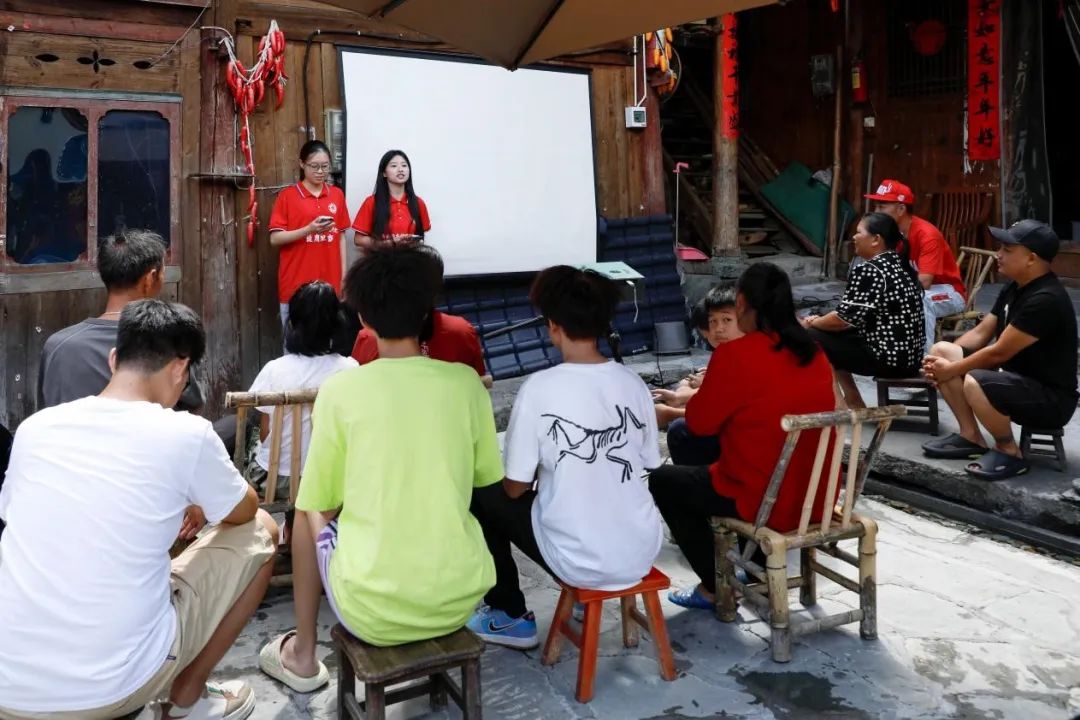 一群身着红衣的大学生拉横幅、放置PPT展板、调整投影仪、完善摄影设备……小小的四合院里显现出了一道亮丽的风景线。“听说有教直播的课程,我赶紧来参加。”一名村民闻声赶来。紧接着,越来越多的村民不约而同地齐聚在四合院里,搬着小板凳,围着两位培训负责人,坐在了展板前。