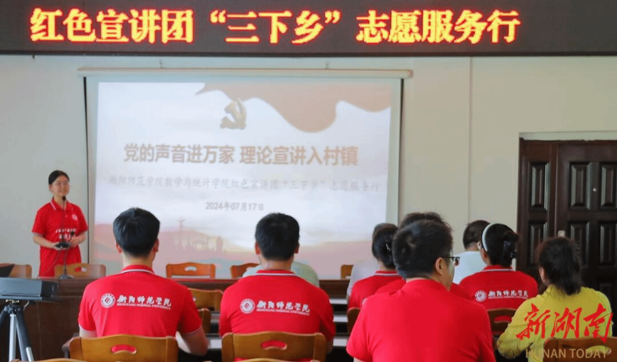 在村会议室,宣讲团成员们以“党的声音进万家,理论宣讲人村镇”为主题,为延塘村的村民们献上了一场既生动又富有感染力的宣讲盛会。同学们结合自身学习和研究,用通俗易懂的语言,讲述了中国共产党的光辉历程和伟大成就,以及革命先辈们英勇无畏、无私奉献的感人事迹。村民们听得津津有味,纷纷表示深受启发,对党的历史和革命精神有了更深刻的认识和感悟。